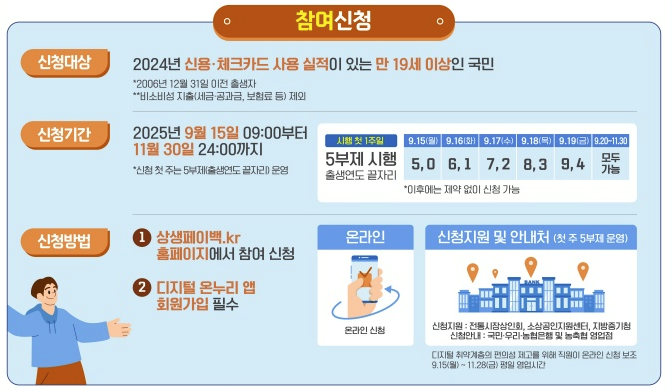 • 온라인: 9월 15일 ~ 11월 30일, 공식 홈페이지(상생페이백.kr)에서 신청 가능합니다.
