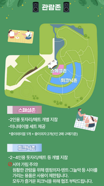 - 피크닉 매트 설치 시 다른 관람객 시야 배려